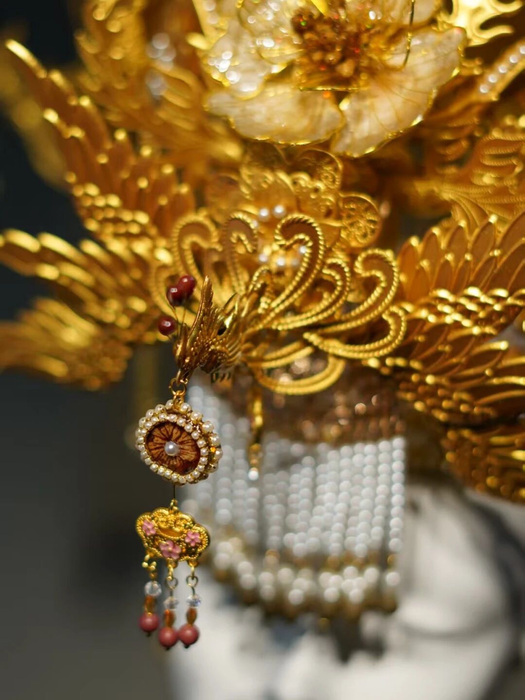“中藥之冠”由揚(yáng)子江聯(lián)合文化創(chuàng)作博主共同打造,設(shè)計(jì)靈感源自傳統(tǒng)龍鳳冠,既承載了“龍鳳呈祥”“健康長壽”的美好寓意,又實(shí)現(xiàn)了對中藥材的藝術(shù)化再造。制作團(tuán)隊(duì)從上百種藥材中精選20余味,用特殊工藝保留藥材天然質(zhì)感與清雅藥香:木蝴蝶被塑造成層疊的牡丹花瓣,金銀花與紅豆搭配成精巧花蕊,冠冕流蘇則由多味藥材研磨制成的香珠串聯(lián)而成,成為可觀賞、可感知的中醫(yī)藥文化新載體。